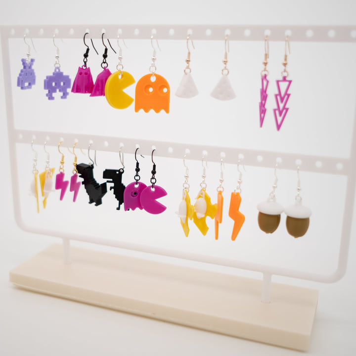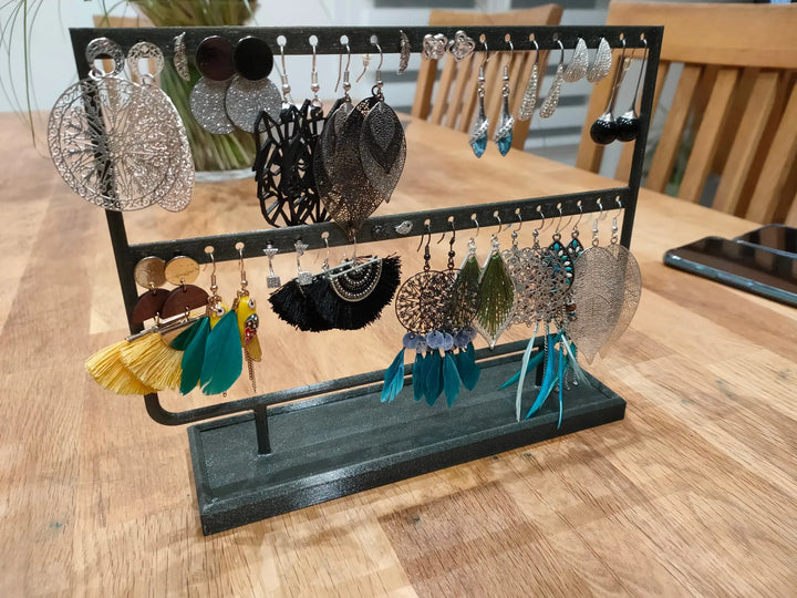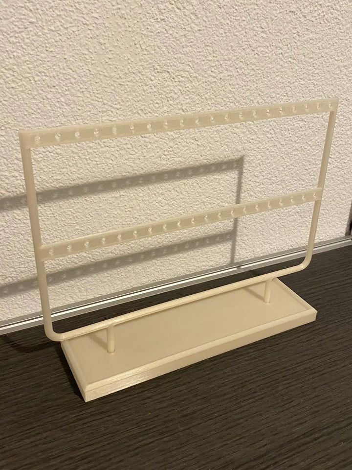 Bewahren Sie Ihren Schmuck und Ihre Ohrringe an diesem wunderschönen Schmuckhalter organisiert auf. Nimmt minimalen Platz ein und gibt Ihnen einen Überblick über Ihren Schmuck, da Sie ihn nach Farben/Größen sortieren können. Der Halter misst 228 mm in der Breite und 179 mm in der Höhe. Die Basis misst 200 mm in der Breite und 13 mm in der Höhe. Das Produkt wurde von M3D entworfen.