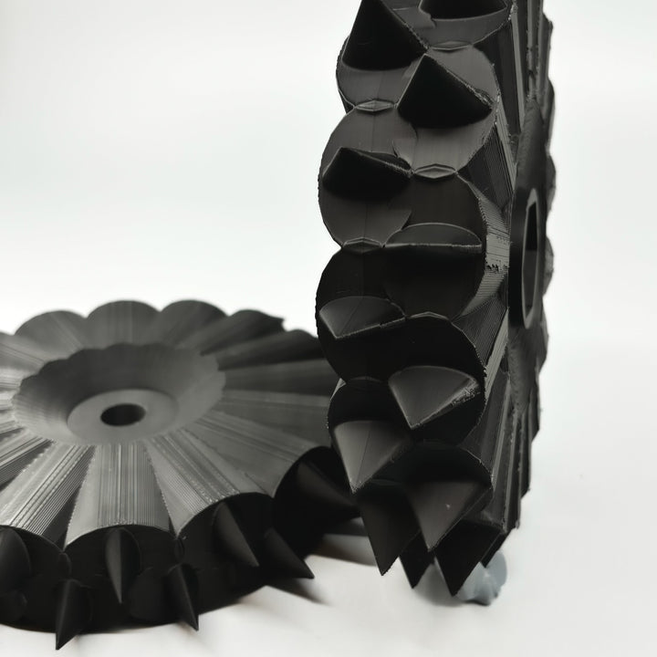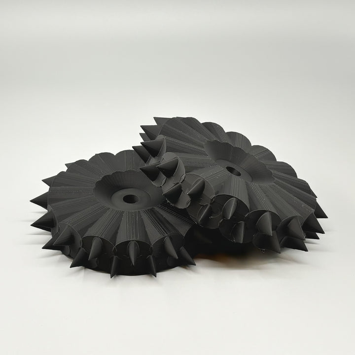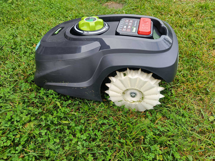 Geländereifen ausgestattet mit Spikes für deinen Grouw Rasenmähroboter. Die Räder tragen dazu bei, dass der Roboter besseren Griff auf unebenem und nassem Gelände erhält.
