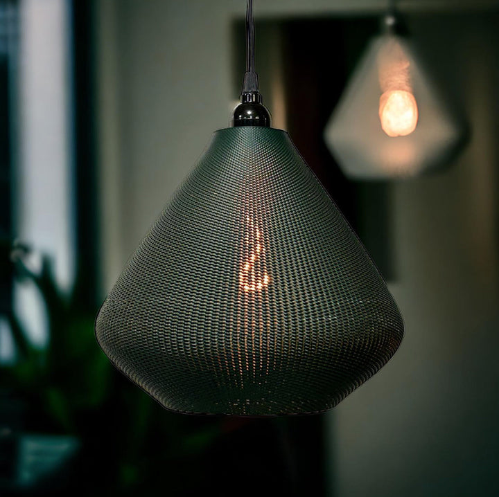 Ein stilvoller Pendelleuchtenschirm mit einer 3D-gedruckten Webtechnik. Perfekt für Wohnzimmer, Restaurants, Cafés und Bars.