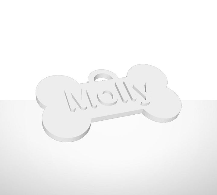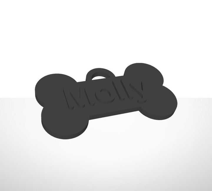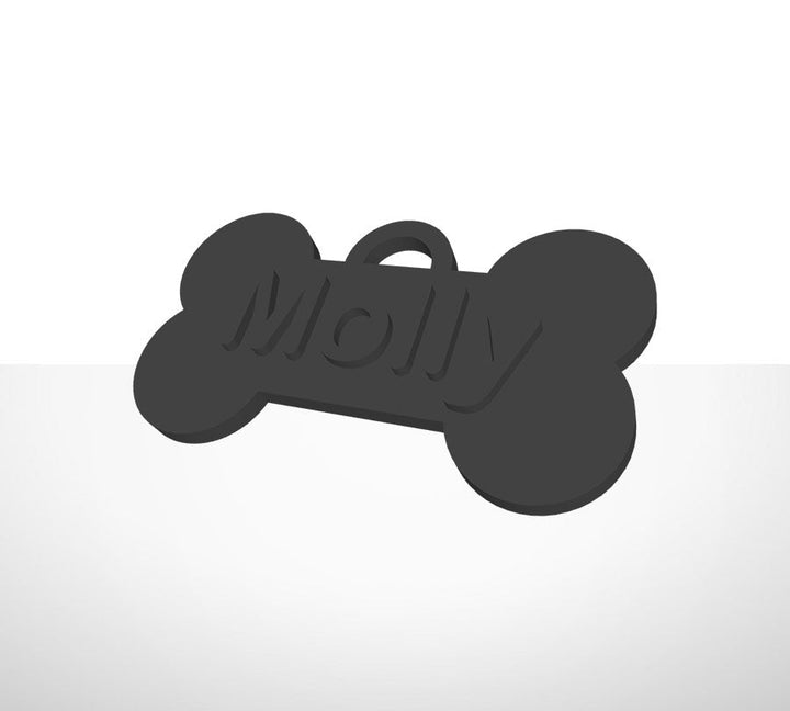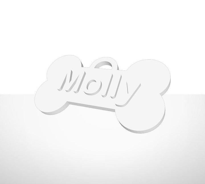 Kleines Namensschild für deinen Hund, geformt wie ein Knochen. Das eigentliche Knochenstück misst 40 x 22 mm. Wird verkauft mit einer Packung von 3 Stück Hundemarken. Schreibe die Namen in das Feld oben, getrennt durch ein Komma. Das Produkt wurde entworfen von ssaggers, Remix von Din3Dprinter