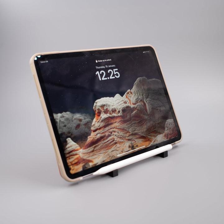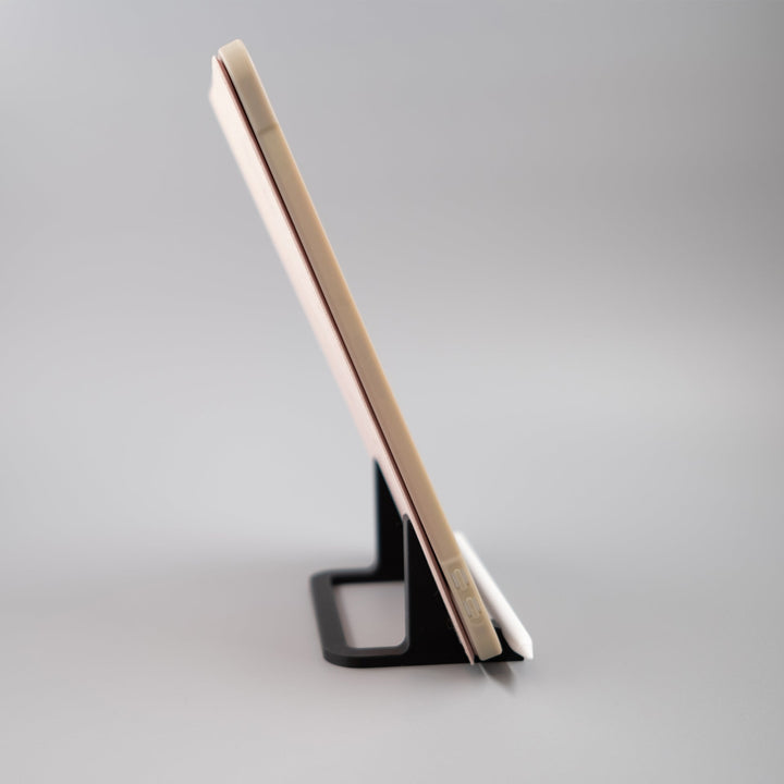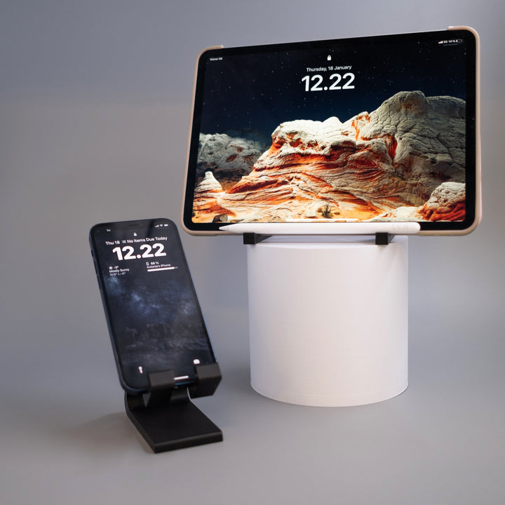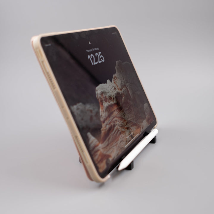 Der Halter passt für ein iPad ohne Hülle, d.h. bei einer Dicke von 13 mm. Kombinieren Sie ihn mit unserem kompletten Set an 3D-gedruckten Ständern für Smartphones und Laptops, um einen perfekt organisierten und stilvollen Arbeitsplatz zu schaffen. Dieses Produkt wurde von