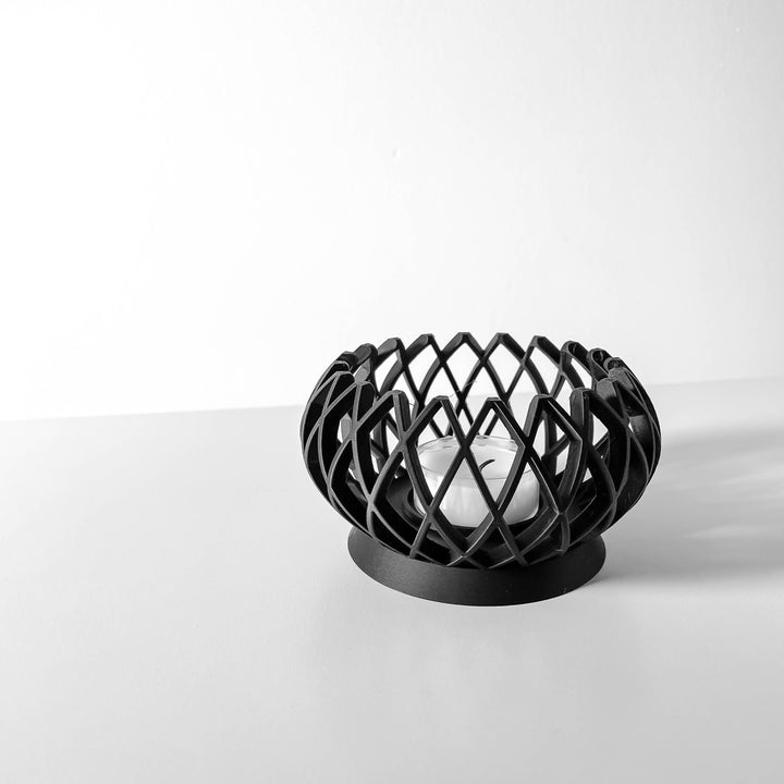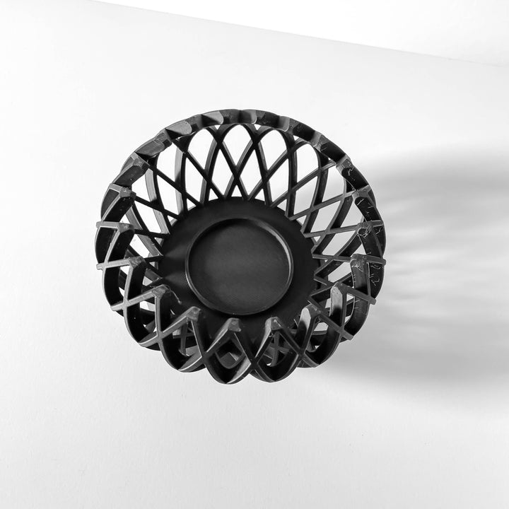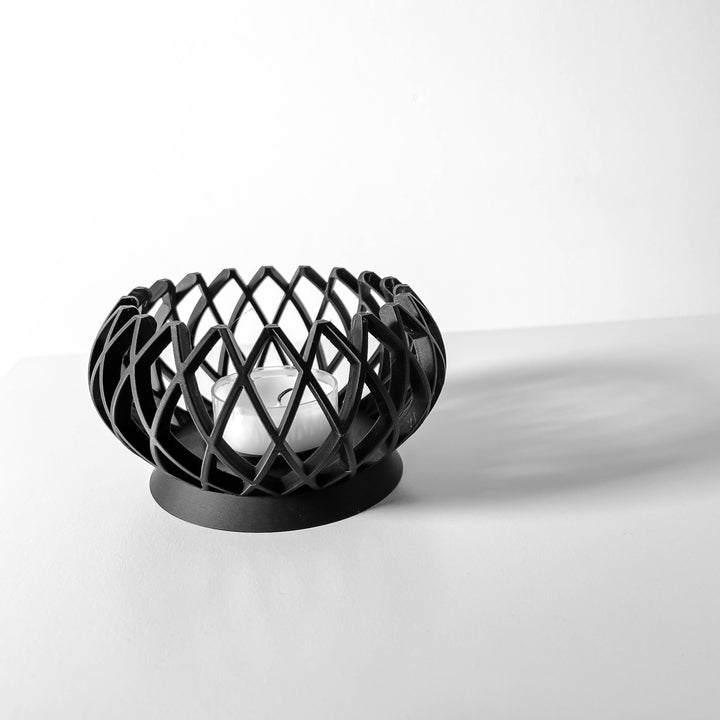 Bringen Sie Eleganz und Gemütlichkeit in Ihr Zuhause mit unserem raffinierten, 3D-gedruckten Kerzenhalter, der für Teelichter entworfen wurde. Dieser Kerzenhalter ist so gestaltet, dass er faszinierende Muster erzeugt, wenn das Licht hindurchscheint, und sorgt so für eine einzigartige Atmosphäre in jedem Raum.