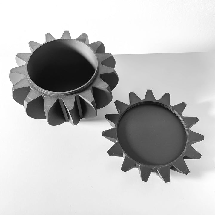 KIRE präsentiert ein komplexes geometrisches Design mit gewinkelten Konturen, die mit Licht und Schatten spielen und somit ein auffälliges Stück schaffen, das sowohl eine Aufbewahrungslösung als auch ein Kunstwerk ist. Die kontrastierenden Texturen machen es zu einem idealen Akzentstück für Räume, die kräftige Muster feiern.