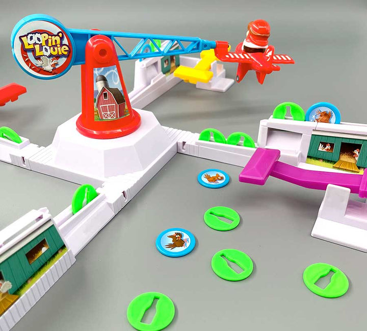 Alle kennen das beliebte und unterhaltsame Spiel Loopin Louie, bei dem ein mutiger Pilot in seinem kleinen Flugzeug herumfliegt und versucht, alle Hühner (Spielfiguren) der Spieler zu schnappen.