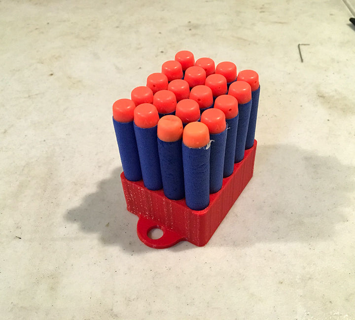 Praktische Aufbewahrung für deine Nerf Gun Patronen. Sie ist perfekt für Kinder, um während des Spielens den Überblick über ihre Schüsse zu behalten. Wenn alle Patronen an ihrem Platz sind, ist es leicht zu überblicken, ob man alle gesammelt hat. Platz für 20 Schüsse.