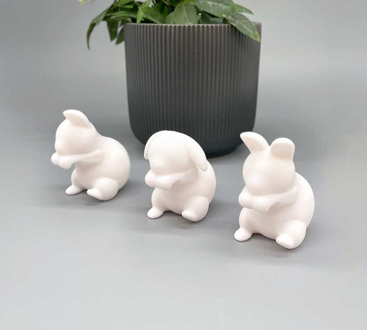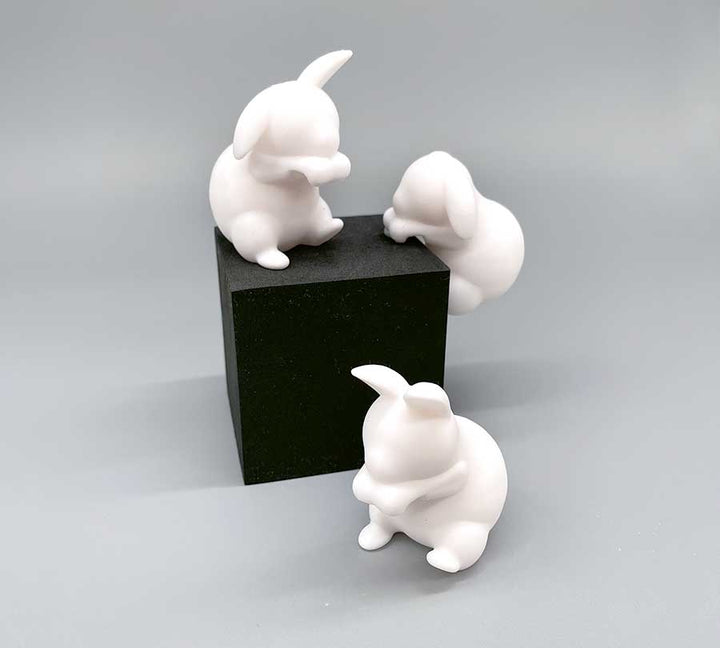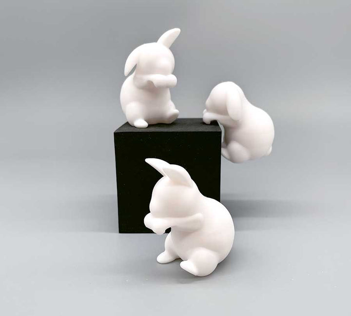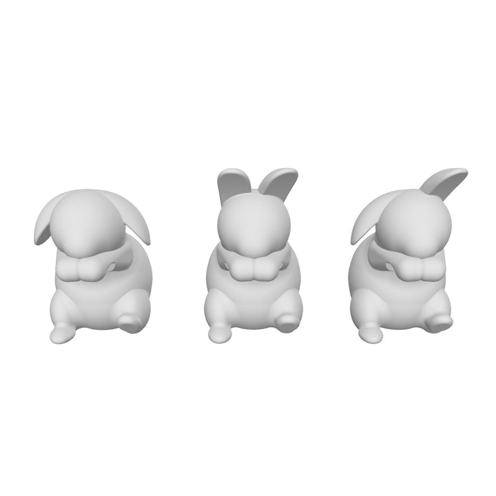 Die Kaninchen sind ca. 65-75 mm hoch und kommen in einem Paket mit 3 Stück, je eine von jeder Sorte.