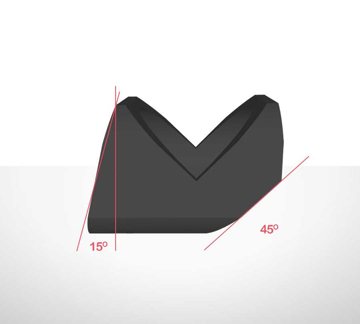 Diese Schablone hat den geraden Schnitt bei 90 Grad sowie 45-Grad-Winkel, die zu T-Stücken passen. Der große Winkel hier misst 15 Grad.