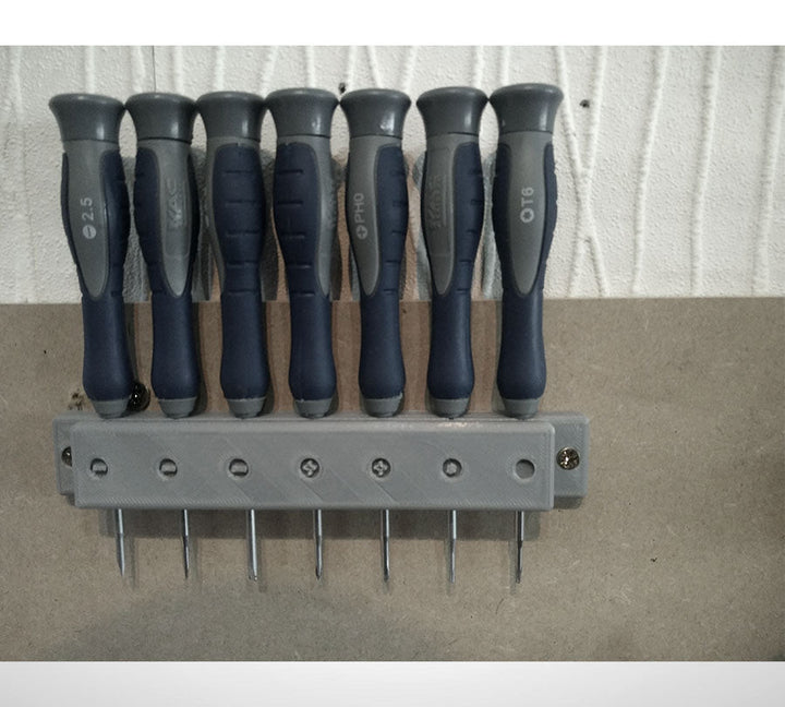 Ein einfacher und schicker Schraubendreherhalter. Dieser Halter stellt sicher, dass die Schraubendreher gerade hängen, damit Ihr Werkstatt oder Schuppen ordentlich und organisiert bleibt.