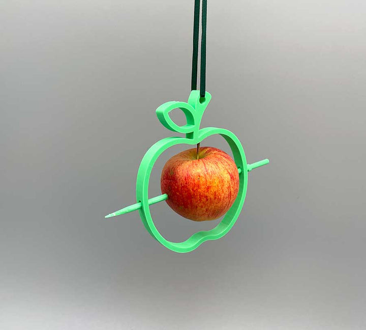 Nehmen Sie einen Apfel und setzen Sie ihn in die Mitte des Halters und führen Sie den mitgelieferten Spieß durch die Löcher an der Seite. Danach hängen Sie den Apfel an einen Baum, ein Vordach oder Ähnliches. Die Vögel können nun auf dem Stab landen und dort sitzen, während sie den Apfel essen.