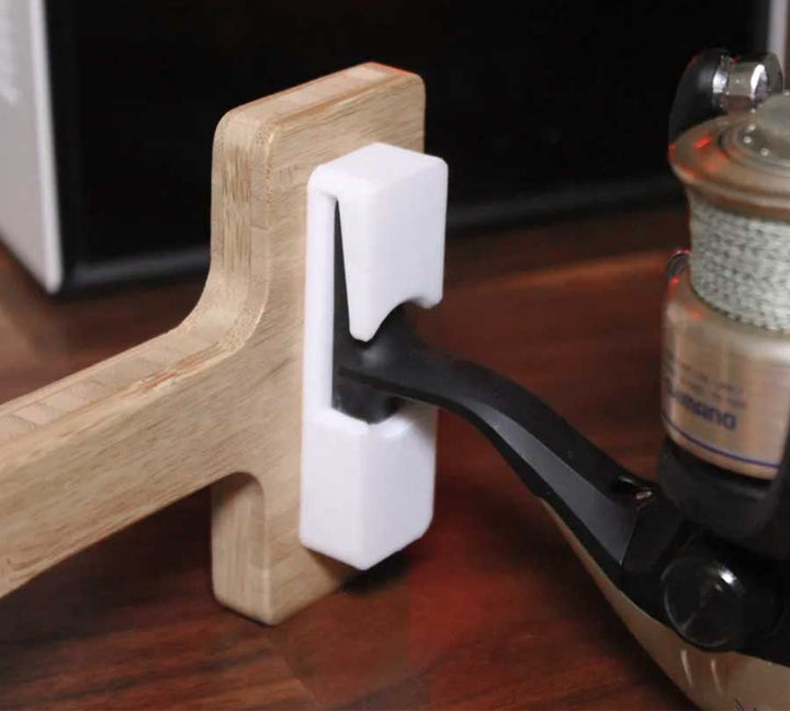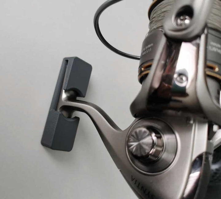 Diese Wandhalterung für Angelrollen ist für eine einfache und praktische Aufbewahrung konzipiert. Mit dieser Lösung können Sie Ihre Angelrollen organisiert und leicht zugänglich aufbewahren.