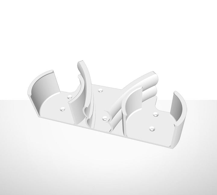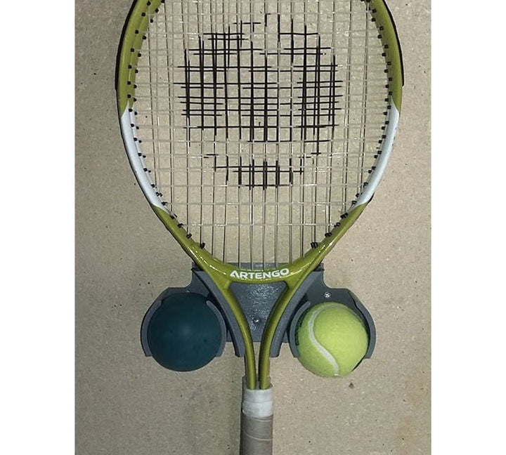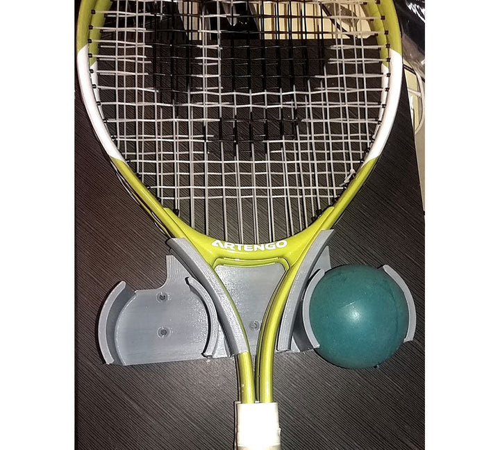 Wandhalterung für Tennisschläger zur einfachen und praktischen Aufbewahrung. Es gibt auch Platz für 2 Bälle.