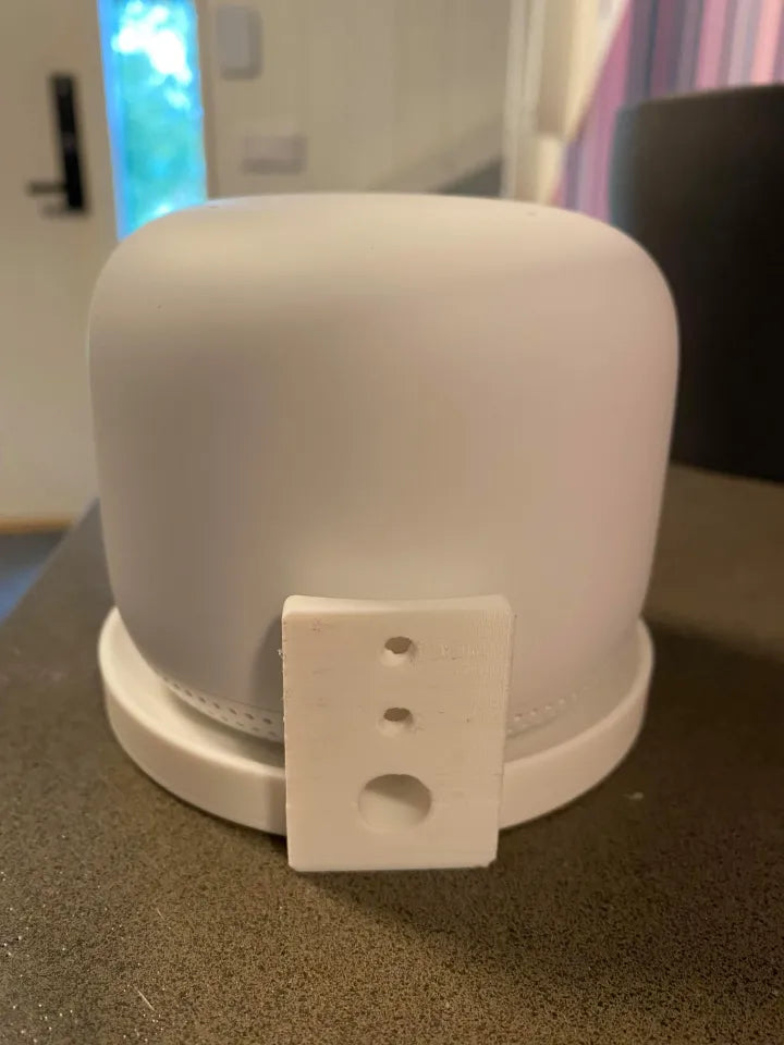 Eine einfache Wandhalterung für Google Nest Wifi, die es Ihnen ermöglicht, Ihr Google Nest Wifi vertikal an der Wand zu platzieren, um Regalfläche zu sparen. Einige Schlüsselfunktionen des Designs beinhalten: