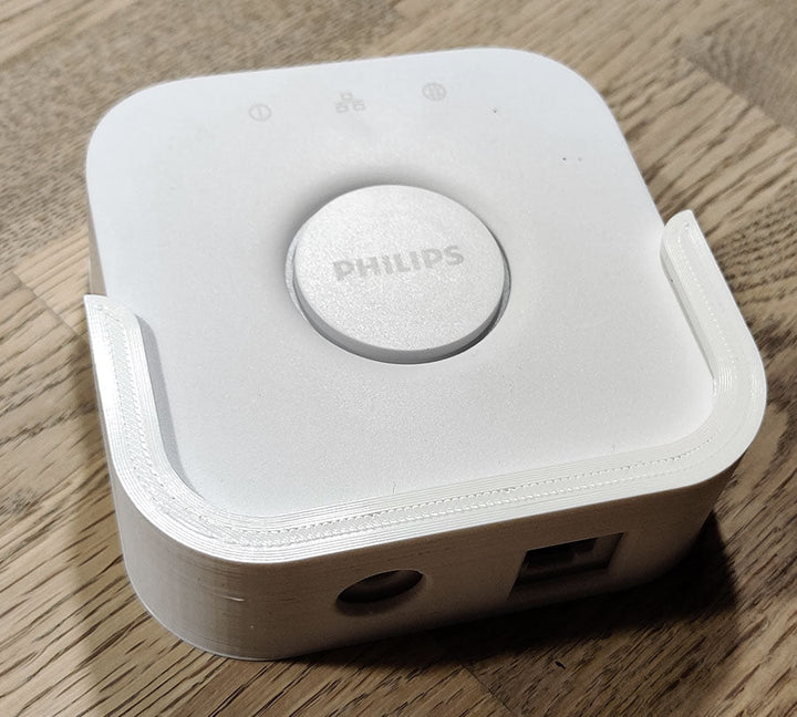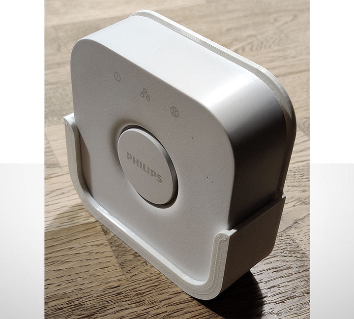 Die perfekte Wandhalterung für Philips Hue Bridge. Mit dieser cleveren Wandhalterung kannst du deine Bridge einfach dort montieren, wo du willst.
