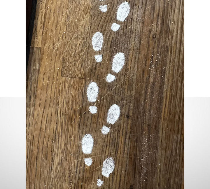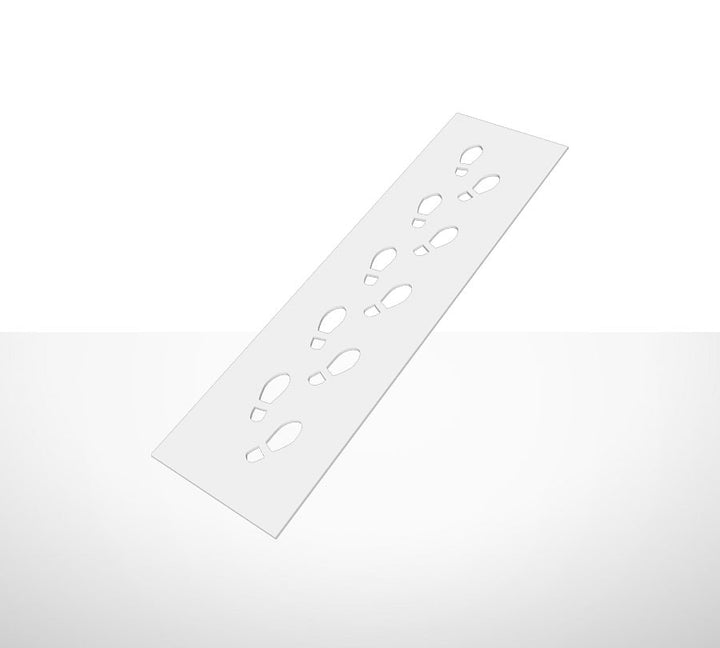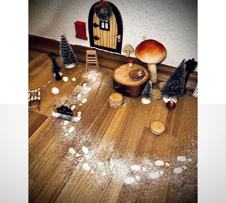 Zubehör für die Wichteltür. Machen Sie mit dieser cleveren Schablone kleine Fußspuren auf dem Tisch oder Boden. Sieben Sie Mehl oder Puderzucker auf die Schablone und entfernen Sie diese vorsichtig.